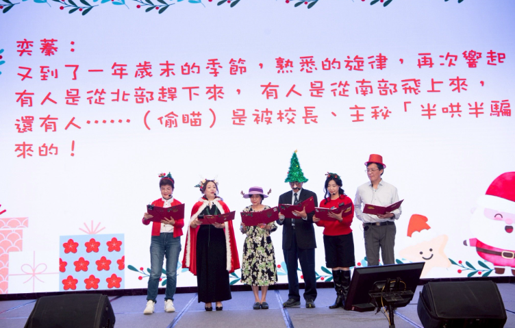 晚間6時,聖誕晚會正式展開。活動現場以繽紛節慶布置打造溫馨氛圍,每一項精彩表演均展現籌備團隊精心策劃及演出者反覆練習的努力成果。活動內容豐富多元,包括火雞秀開場、朗頌讚吟聖誕與友誼、人氣天團Black Bean’s Like Jennie表演、阿帕茲全員舞蹈演出,以及聖誕老公公與聖誕女郎派發糖果與互動拍照環節,讓校友與家屬度過難忘夜晚。現場更安排「歡唱無限」互動時段,增進校友間交流與親子互動,氣氛熱烈而歡樂。