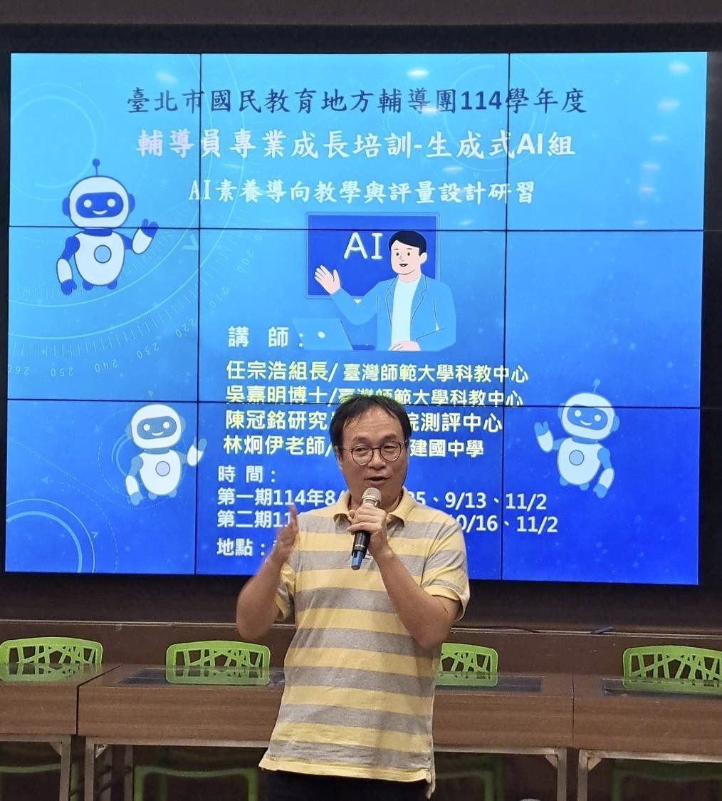 本次工作坊自8月22日展開,邀集各分團輔導員參與「AI協作素養導向教學與評量設計專業成長增能工作坊」,結合生成式AI實務應用,如ChatGPT、Google Gemini等,協助教師建構互動式教學平台,設計個別化學習任務及即時回饋機制,並運用雲端平台呈現學生素養成果,提升課堂智慧化與互動性。