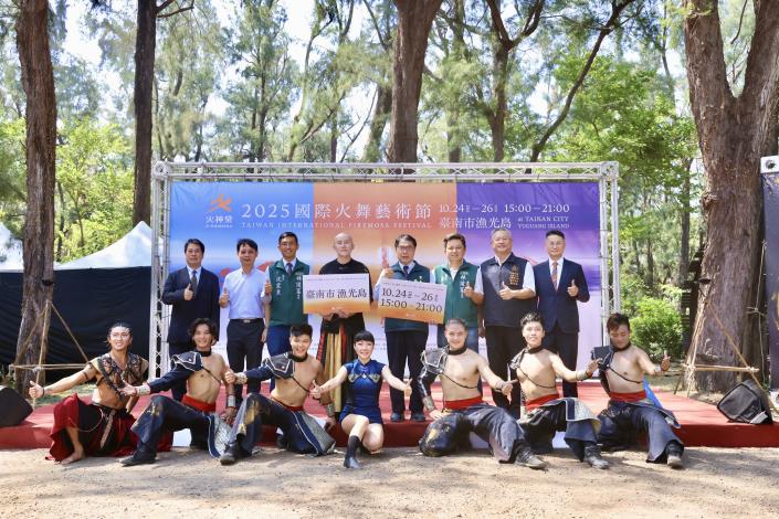 臺南市首屆國際火舞藝術節《火神祭》(Firemosa)將於10月24日至26日在漁光島登場。活動以「火裡重生,島上覺醒」為主題,結合火舞、音樂、互動體驗與裝置藝術,打造夕陽、海浪與火光交織的藝術場景。今(13)日,市府於漁光島舉行宣傳記者會,由市長黃偉哲與國際火舞團隊「即將成真火舞團」共同揭幕,宣告活動正式啟動。
