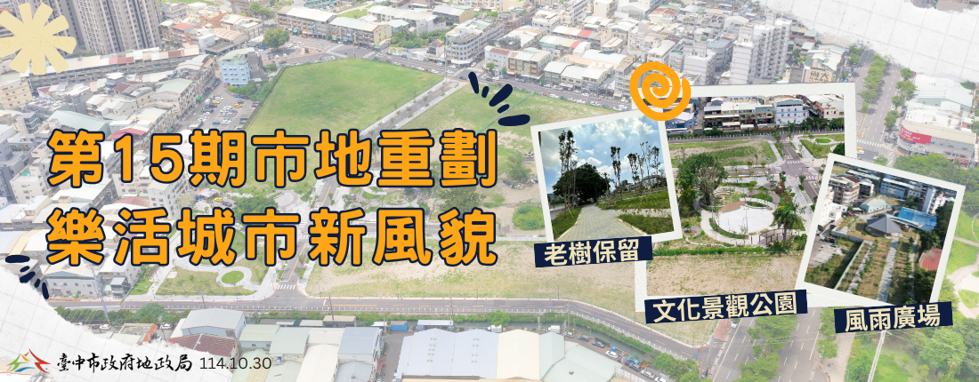 至於第15期「大里杙公辦市地重劃區」位於大里區,面積約6.9公頃,是全國首例以「跨區市地重劃」方式辦理公共設施用地解編的案例。重劃後不僅完善基礎建設,也讓原地主能領回具開發價值的商業與住宅區土地,創造政府、地主與社會三方共贏的典範模式。
