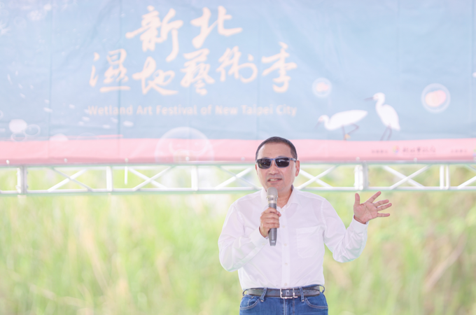 他指出,大漢溪過去長期受到工業與生活污水排放影響,市府近年積極推動下水道建設、人工濕地與自然淨化機制,水質與生態均獲顯著改善,濕地成為民眾休憩與親子散步的重要綠地。「邀請大家在藝術季期間或平時假日,與家人朋友一起來走走、看看新北濕地的美麗風貌。」侯友宜說。