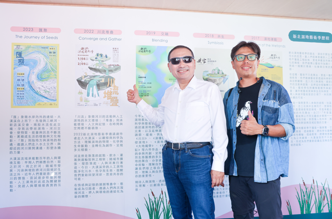 侯友宜表示,濕地藝術季邁入第六屆,今年以「種籽之旅」為主題,邀集來自臺灣、墨西哥及馬來西亞的藝術家共同創作,打造14組融合環境意識與創意美學的作品。活動同時規劃市集、手作體驗與生態導覽,希望透過藝術形式引導市民理解環境永續的價值,也更深入認識大漢溪流域的豐富生態樣貌。