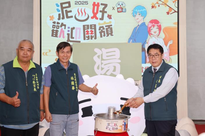 黃偉哲表示,關子嶺為臺灣最早開發的天然泥漿溫泉,泉水呈灰黑色並含鹽類及硫磺,泡湯後肌膚柔滑光潔。來訪民眾除享溫泉療癒,也可品嘗桶仔雞及各式山產料理,結合自然景觀與在地文化,感受台南秋季觀光魅力。
