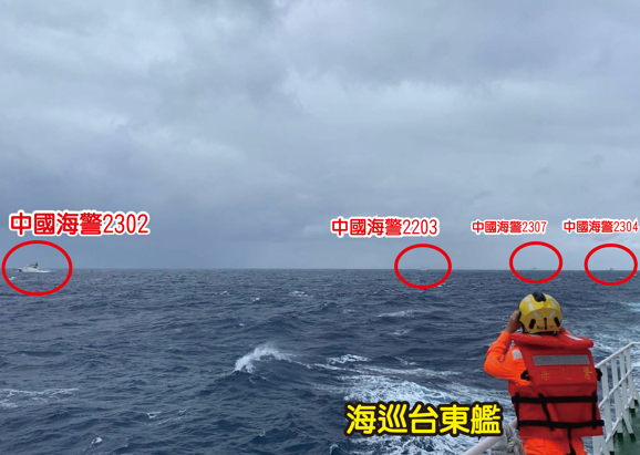 針對近日中國海警船在臺灣周邊海域進行灰色地帶騷擾行為,海巡署今日表示,9艘中國海警船已於凌晨2時40分分批離開,現全數撤離至彭佳嶼東北方43浬外海域。
