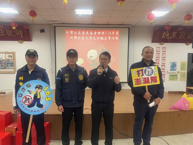 澎湖縣最具特色的冬日盛事——元宵節熱鬧登場,各地廟宇湧現擲筊、乞龜的虔誠信眾,祈求新年順遂、闔家平安。然而,在傳統民俗活動中,詐騙手法也層出不窮,澎湖縣白沙分局攜手竹灣社區發展協會,特別舉辦「114年度竹灣社區元宵反詐騙活動」,呼籲民眾提高警覺,守護財產安全。