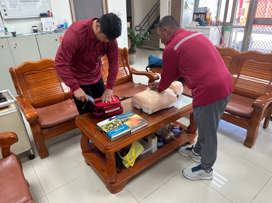 訓練過程中,義消人員不僅學習理論知識,還進行了大量的實務操作,包括熟練掌握水帶佈線與射水流程,以提升操作速度與流暢度,確保能與分隊消防人員協同作業。此外,針對吉貝地區觀光旺季可能發生的溺水事故,訓練中特別強化了心肺復甦術與AED急救流程,旨在提高義消人員對突發情況的應對能力。