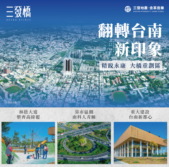 位於臺南市永康區東橋一路275號的「三發橋」,正引領著一場全新的生活風潮。這個位於大橋重劃區旁的全新住宅項目,由三發地產精心打造,是一處結合現代藝術與卓越建築的生活典範。項目包含1幢、3棟共56戶住家與2戶店面,並規劃為地上15層、地下2層,坐擁捷運藍線的第一站,位於雙橋生活圈的核心地段,便利的交通與優質的居住環境,無疑將成為臺南新都心的中心,彙聚了便利、綠意與品味,邀請每一位精緻生活的追求者,見證這一切的到來。