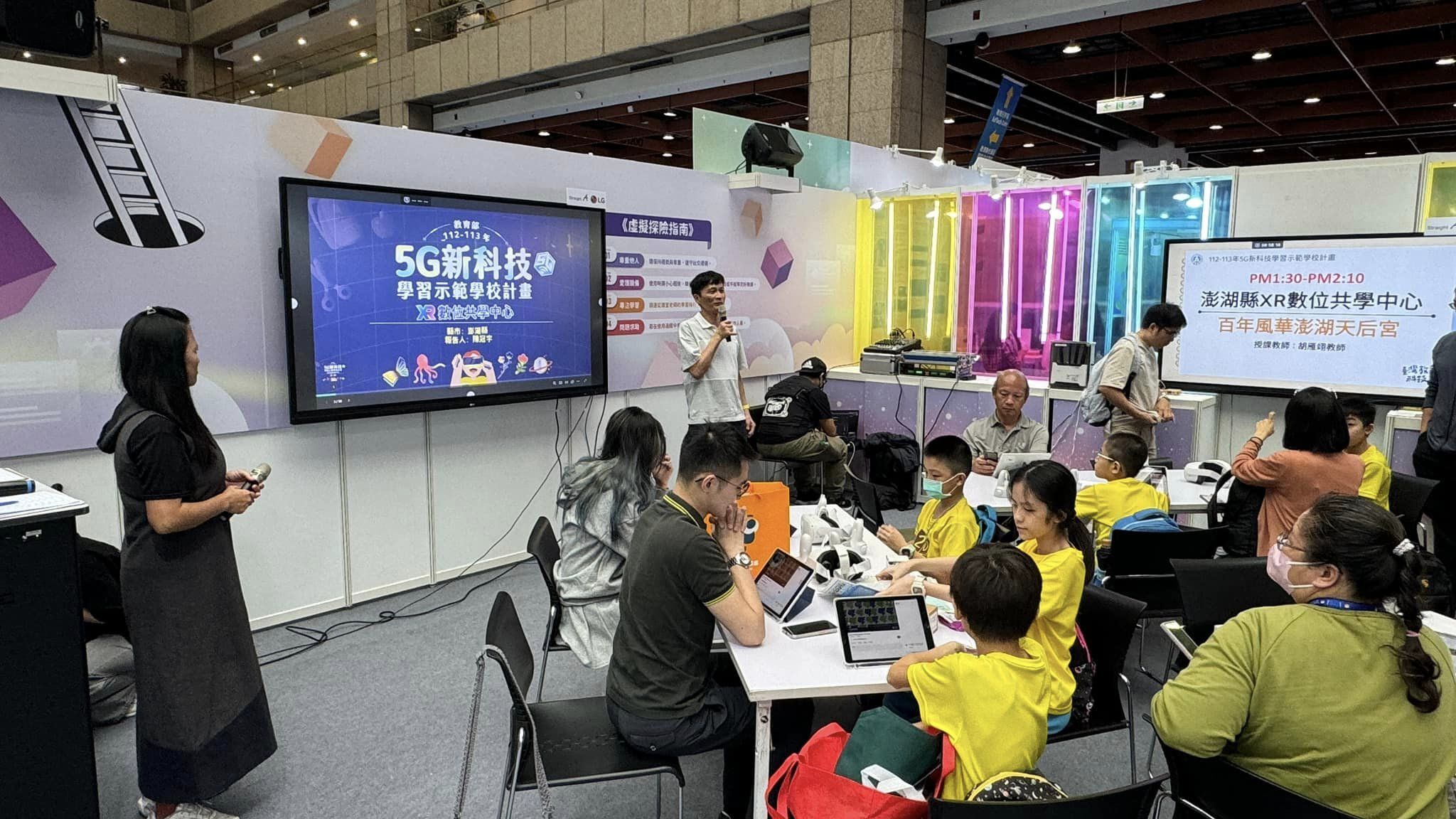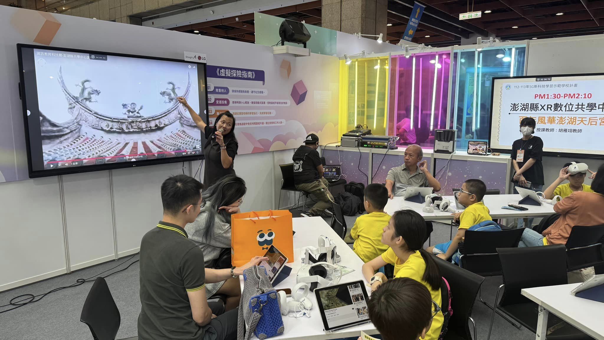 在113年臺灣教育科技展上,馬公國中展示了本縣XR數位共學中心的成效,並吸引了眾多關注。此次展示由胡雁翊教師主講,課程名為「百年風華澎湖天后宮」,並藉由360度環景影片讓觀眾身臨其境地體驗澎湖天后宮的歷史與文化。