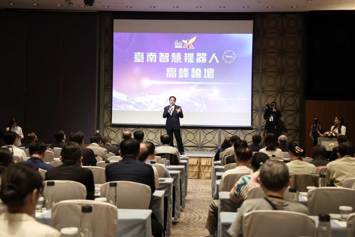 臺南市政府今(9)日於臺南遠東香格里拉飯店舉辦「臺南智慧機器人高峰論壇」,邀集中央、地方、學界與產業界逾百位代表齊聚一堂,聚焦人工智慧(AI)與機器人技術發展及應用落地,展現市府推動智慧機器人產業聚落的積極作為與發展決心。